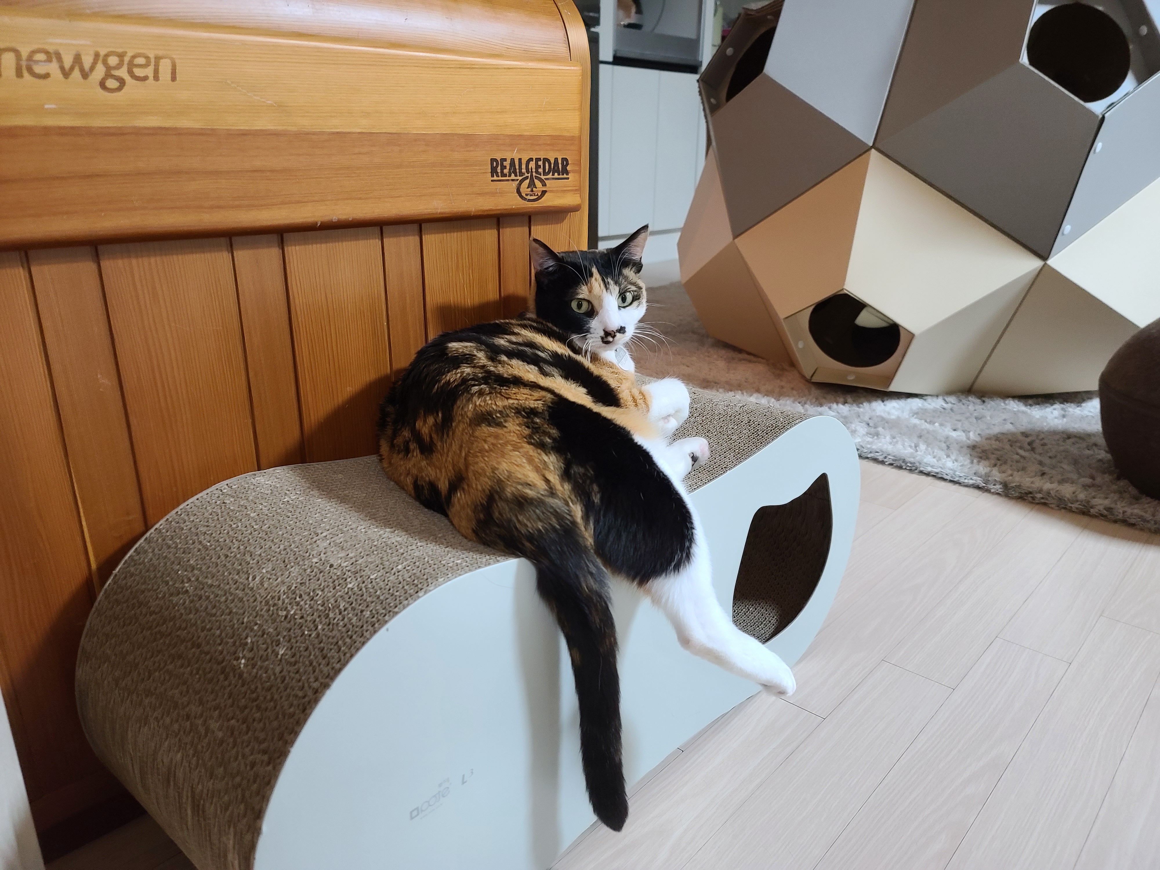 받침대겸 스크래쳐를 놓게 됐다.