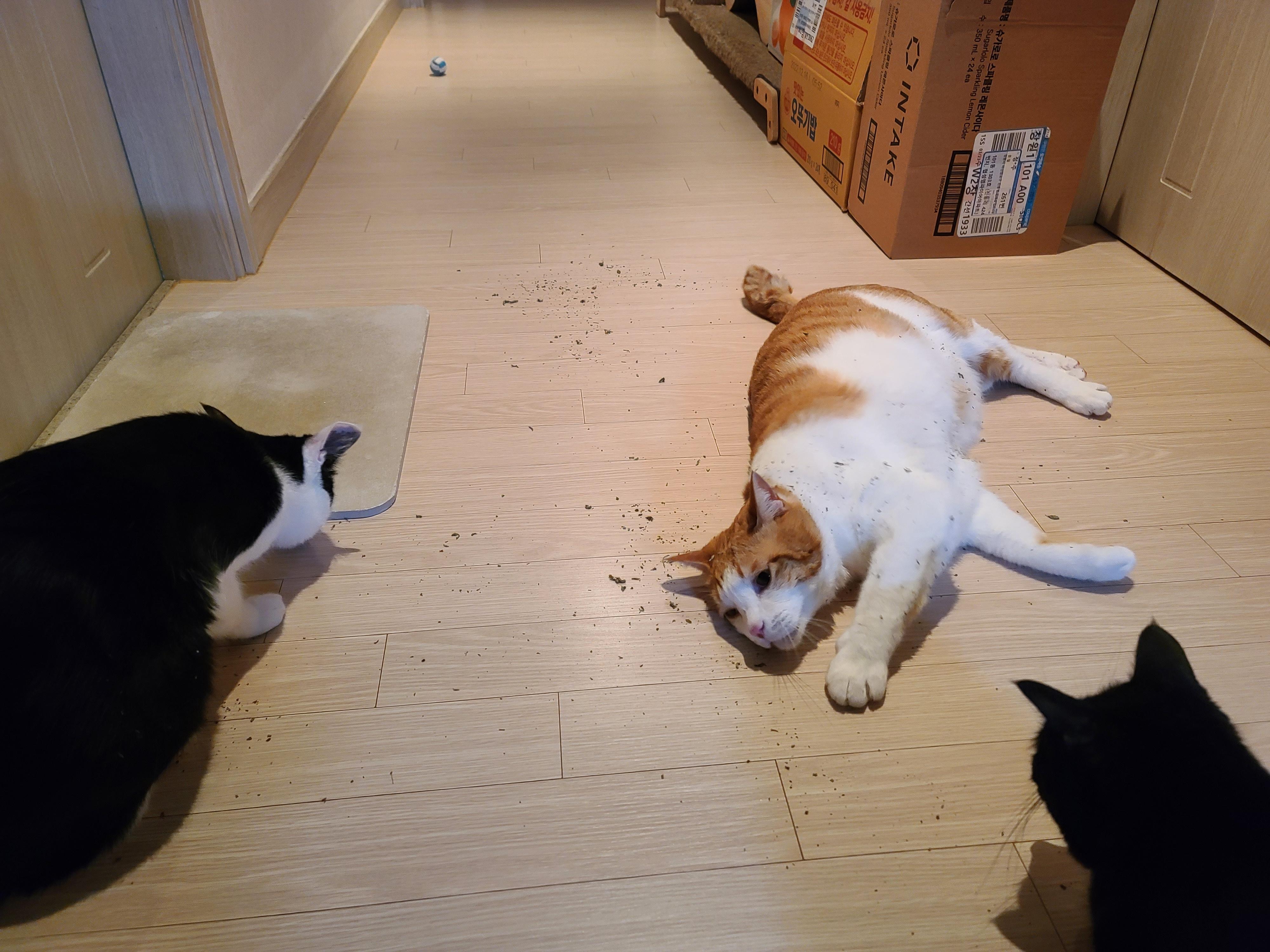 한바탕 캣닢파티 후에..