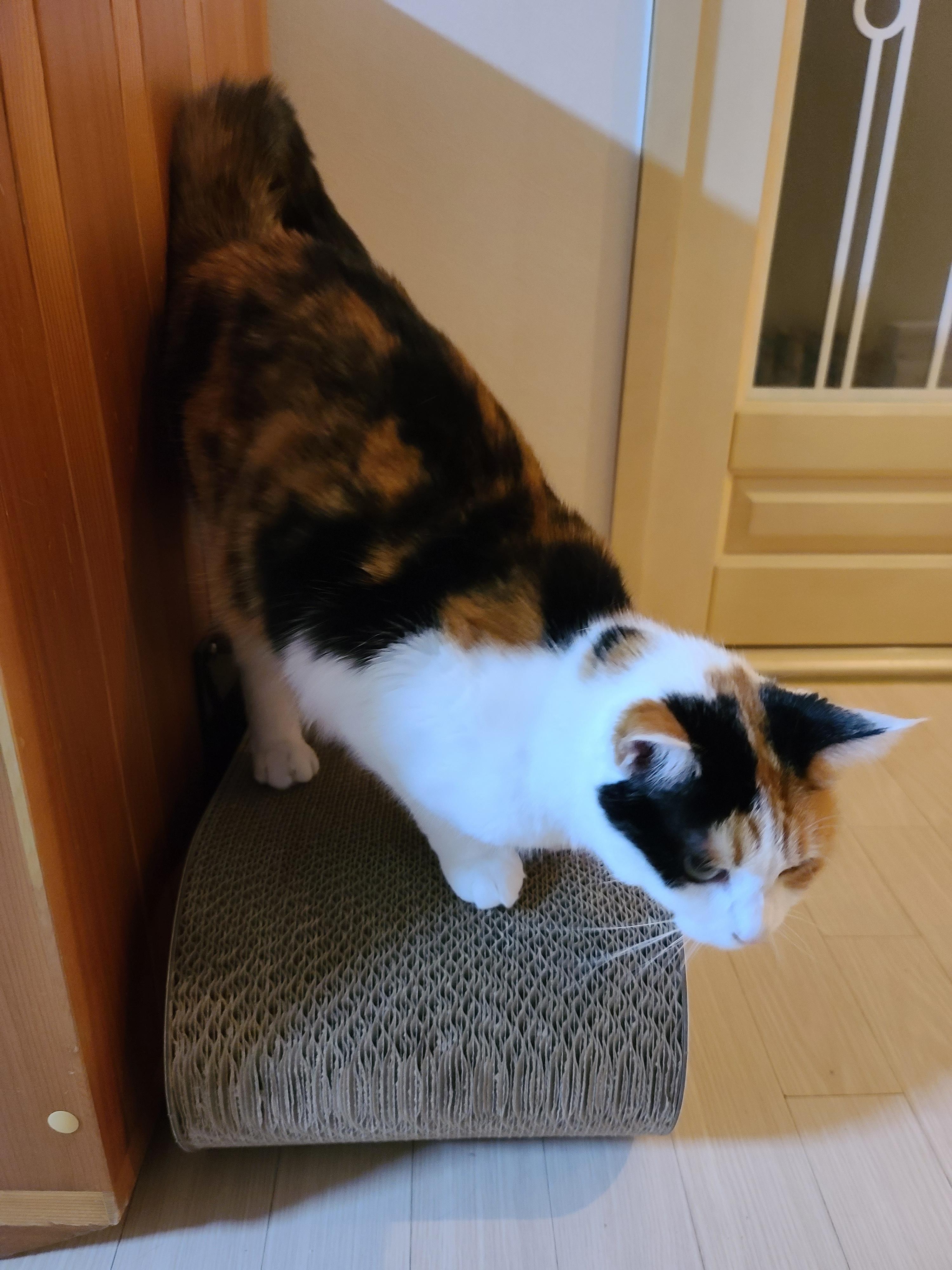 아주 낡은 스크래쳐랑 바꿨다.