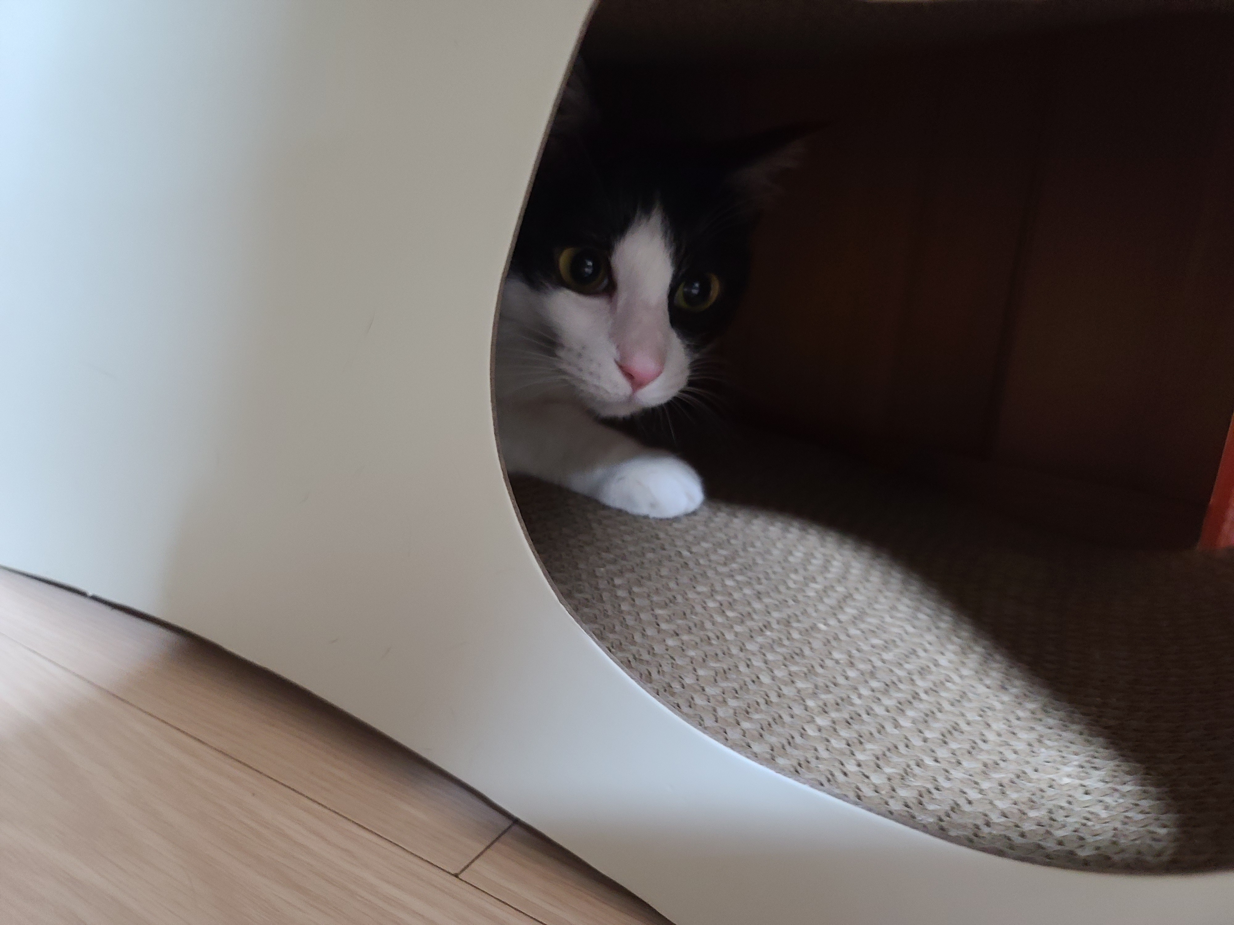 캣타워 아래로 옮겼다.