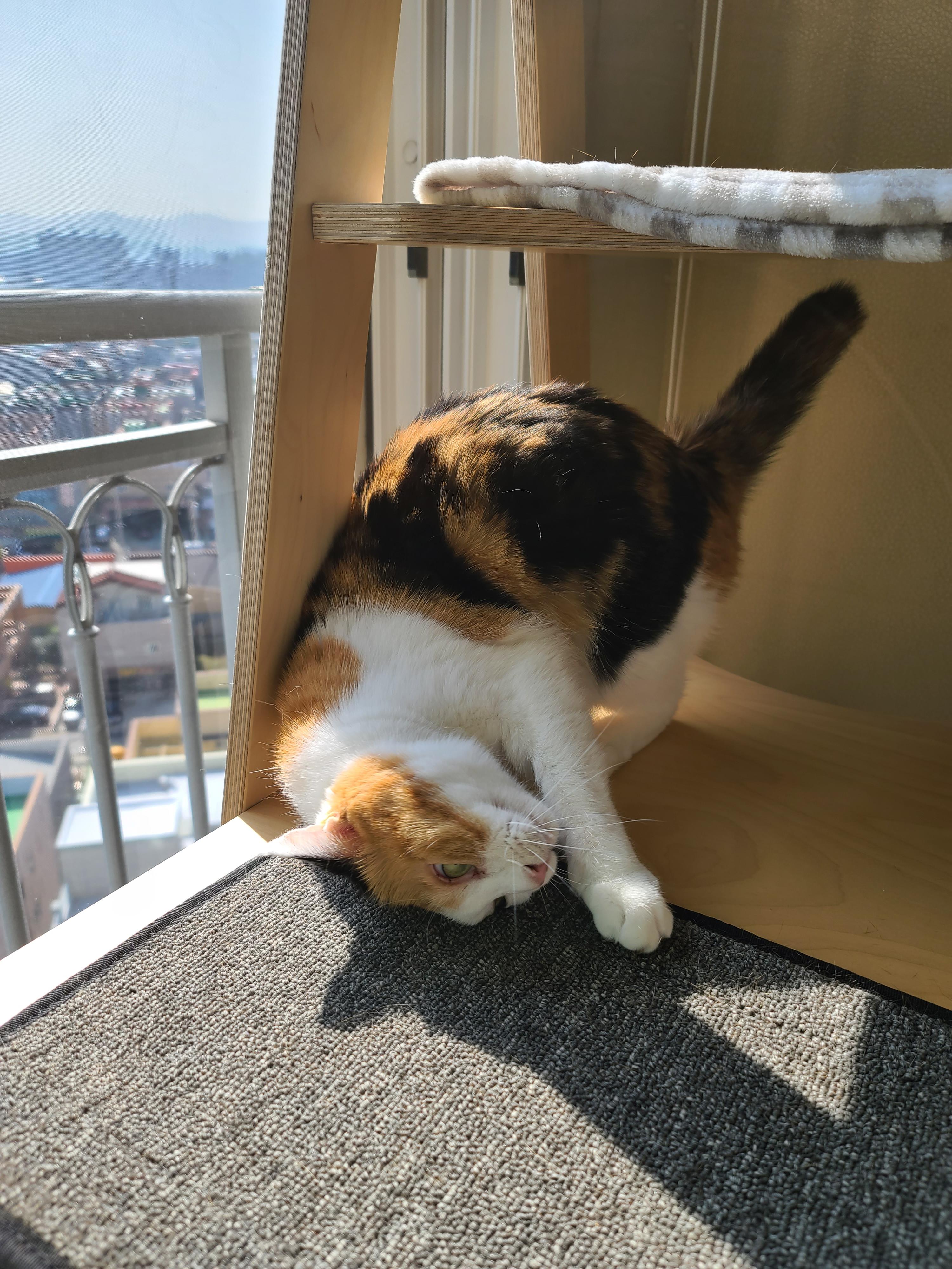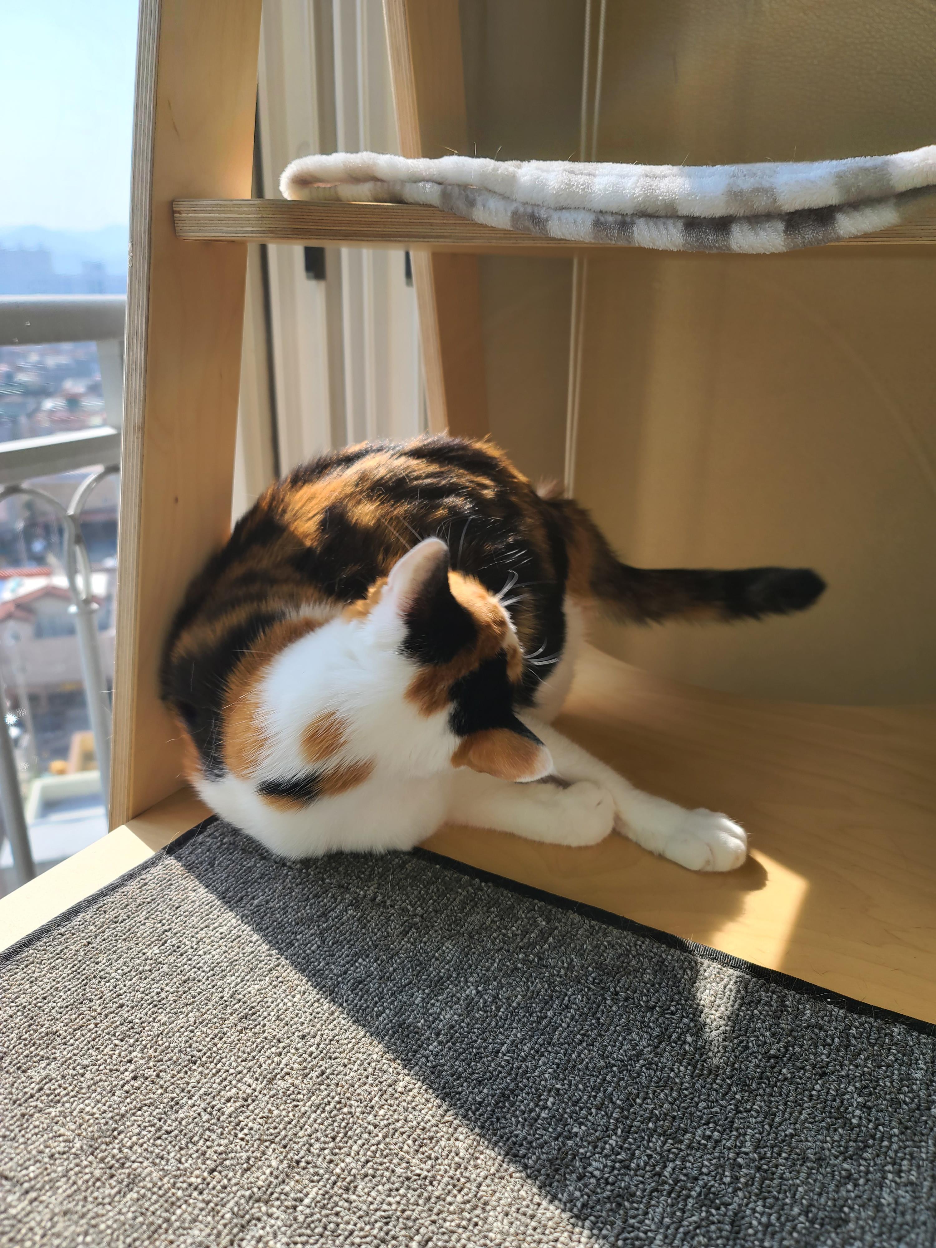 오늘도 캣타워에서 햇빛샤워 하다가